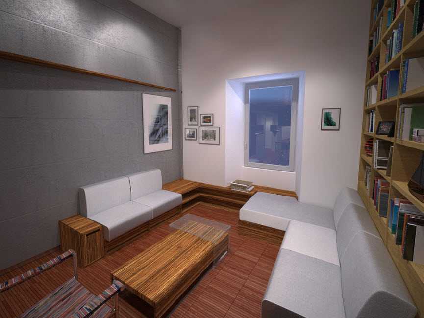 При проектировании такого помещения следует брать во внимание расстановку мебели и форму комнаты, а также ее площадь