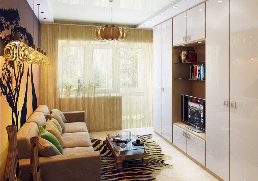 Интерьер проходной комнаты в хрущевкеИсточник www.iro.kz