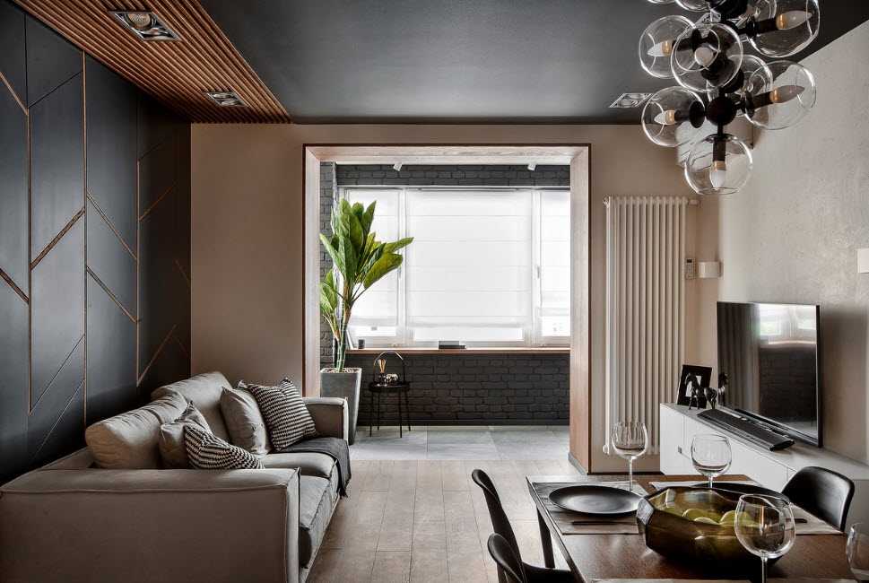 Другое дело, если оба окна в зале достаточно маленькие или выходят на теневую сторону. В этом случае все же стоит отдавать предпочтение светлым, почти белым оттенкам. Чтобы избежать ощущения стерильности, стоит добавить немного фактуры: сделать рельефный потолок или оформить стены объемными 3D-панелями, пусть даже белыми.