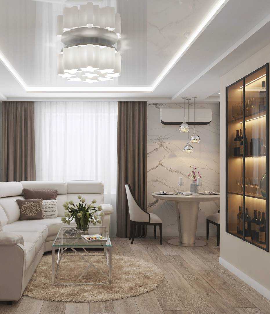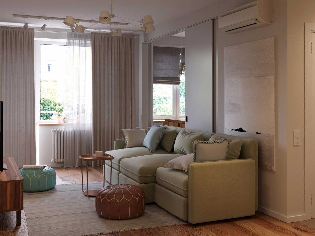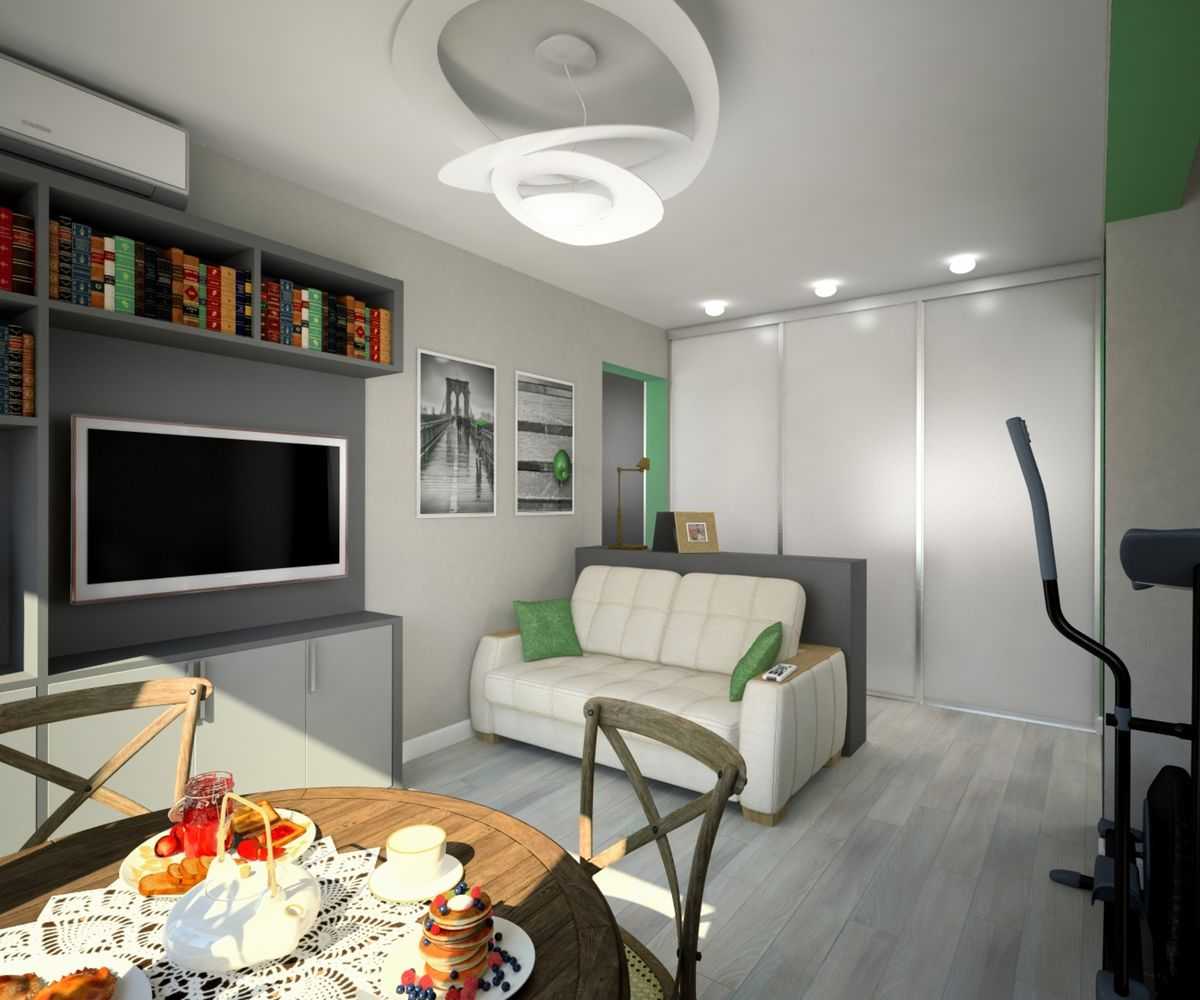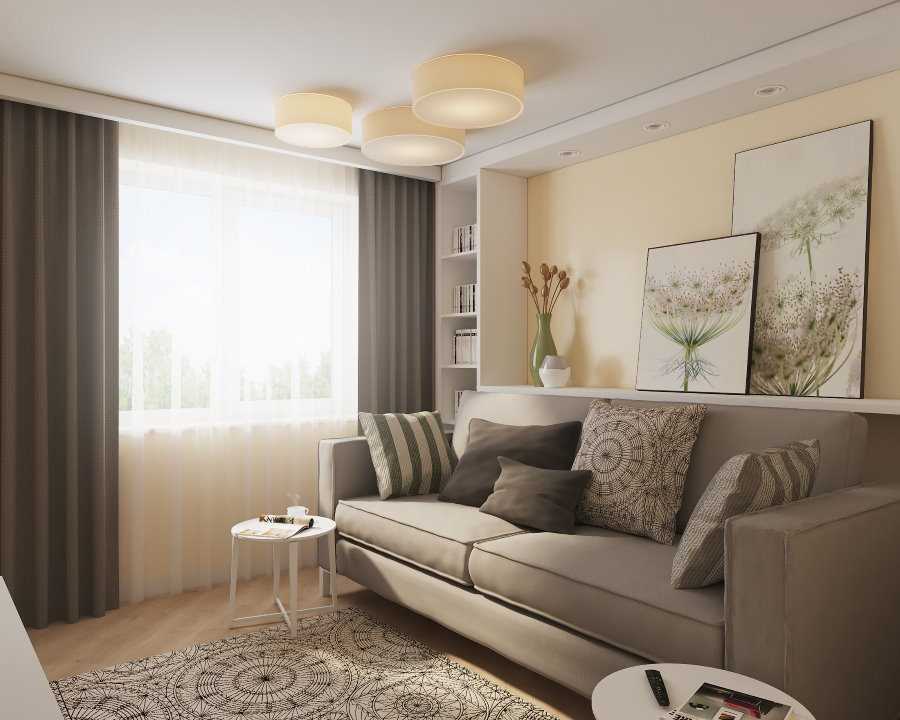 За счет удачного зонального разграничения гостиной в хрущевке, дизайн комнаты со скромной площадью становится функциональным, комфортным и эстетически привлекательным.