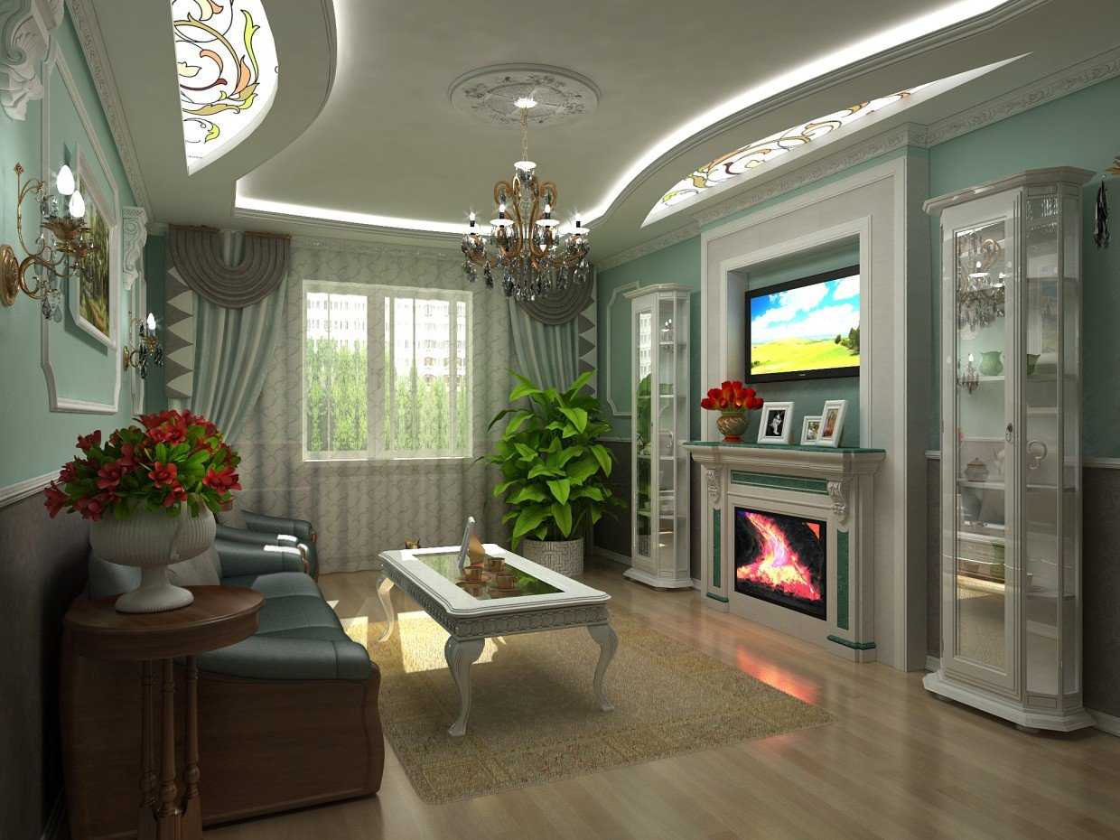 Классический стиль подразумевает использование лепнины на потолке и стенах. Но в малометражной квартире такой прием будет неуместным. Можно использовать потолочный плинтус, но только при высоте потолка не менее 270 см.