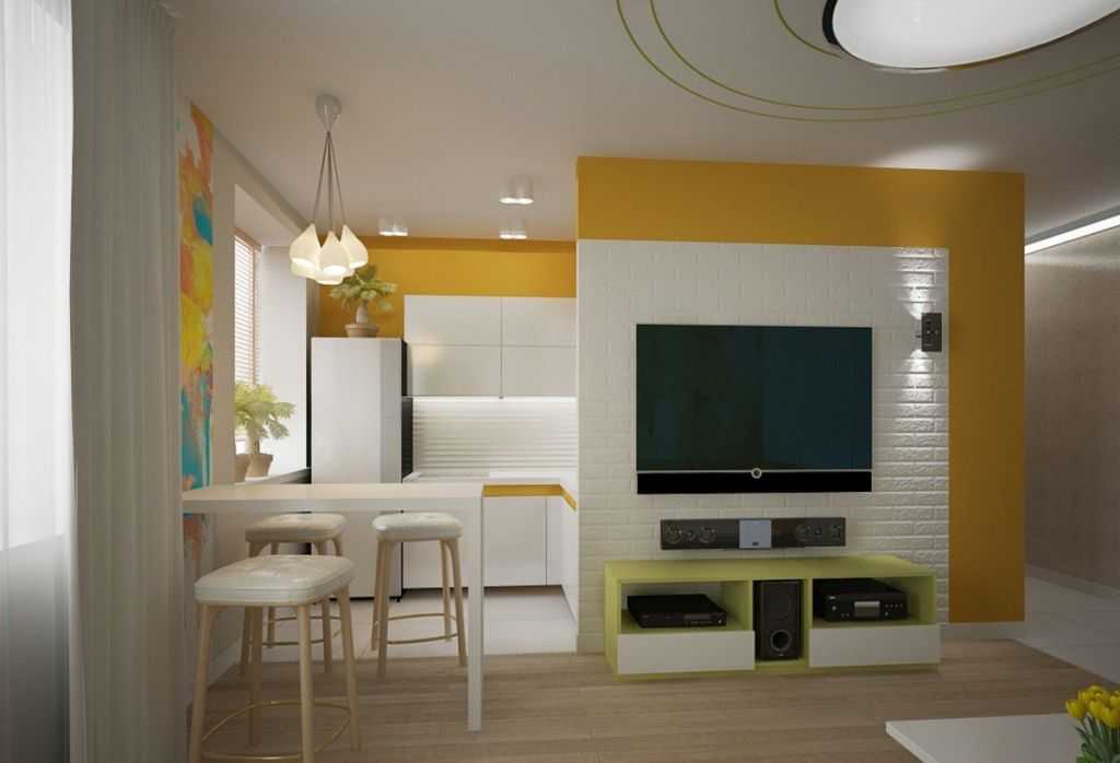 Стильным, эффектным и современным решением для небольшой комнаты является барная стойка, которая прекрасно заменит обеденный стол и сэкономит место в зале.
