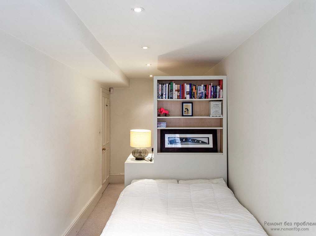 - Уникальный дизайн получится при создании фальшивых стен из гипсокартона, в которых можно будет создать ниши для размещения светильников, декора, книг. Но этот вариант обустройства существенно съест имеющуюся площадь.