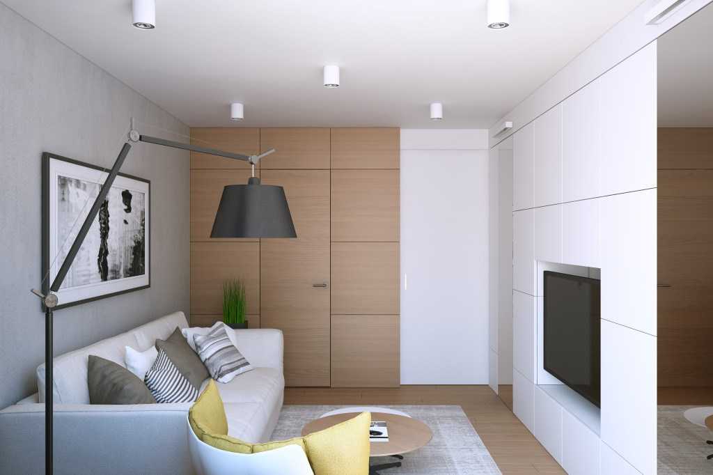 Маленькая квартира в хрущевке — отличный проект! Уникальная небольшая площадь в нейтральных белых тонах в сочетании с серыми, прохладными синими оттенками и бирюзы. Вы будете очарованы изумительным решением такой небольшой площади — точно продуманной и вдобавок чрезвычайно приятной. Оказывается, не только белый цвет осветляет и расширяет маленькие интерьеры, вам не нужно более насыщенных оттенков, а тона сине-стальной стали хорошо сочетаются в небольших помещениях. Минималистичные украшения и детали с оттенком причудливой плитки на стене и на полу в кухне разнообразят маленькую совмещенную комнату. Телевизионный уголок можно организовать на замечательном комоде с оттенком индустриального стиля. Очарование деталей и отличная функциональность в сочетании с ними — немного удивительно, где вы не почувствуете замкнутого пространства. Обращение с белым, серым и блеклым поочередно оказывает успокаивающее влияние на глаза. Детали в стиле скандинавского минимализма с оттенком индустриальности и современности просто и тонко смешаны.
