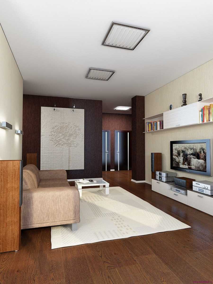 В более практичном варианте комнату лучше оформлять как единую зону отдыха, без делений и зонирования.