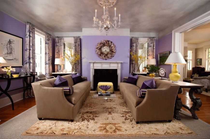 Сочетание сиреневых цветов в интерьере может быть разнообразным и интересным. Оформление дома в этом цвете всегда придаст ему индивидуальности и запомнится гостям. Этот оттенок хорошо сочетается с золотыми, серебряными и бронзовыми украшениями, так что можете, не боясь, использовать их.