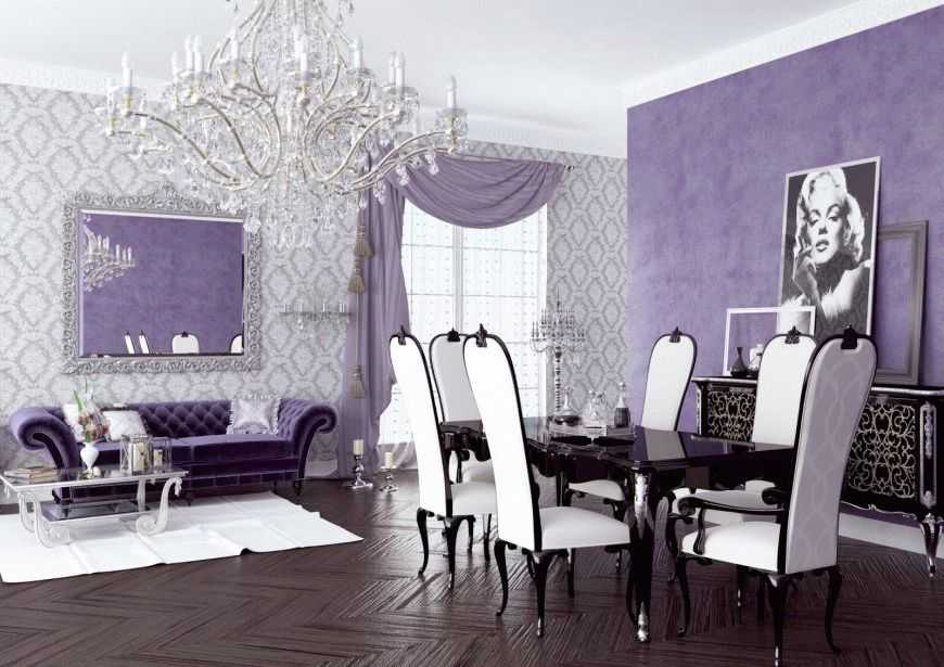 тандем фиолетового и черного подчеркнет шик и изысканность комнаты