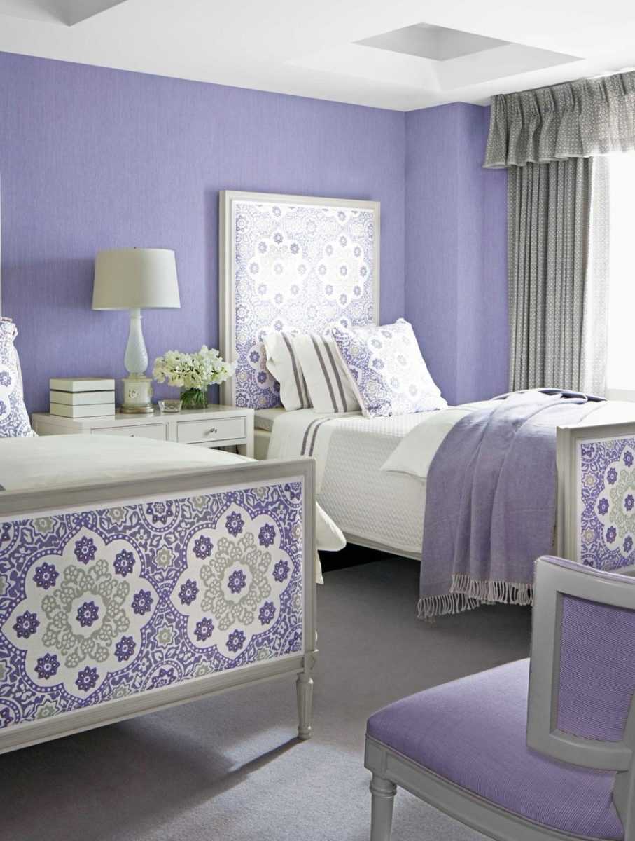 Сиреневые или фиолетовые обои непосредственно в спальне, ввиду своей универсальности, неплохо сочетаются с большинством разнотипных стилей, но всё же в некоторых случаях они являются наиболее уместными и подходящими. Вот примеры таких стилей: