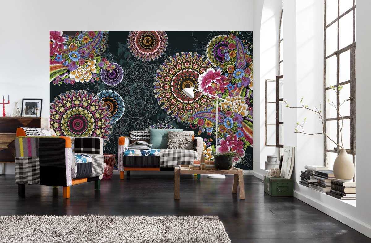 Наряду с доминированием на мебельных поверхностях сдержанных тонов пользуются популярностью яркие орнаменты с определенными этническими чертами. Сочные желтые, малиновые, синие нотки привносят динамичность, праздничность. В таком интерьере приятно находиться после трудового насыщенного дня.