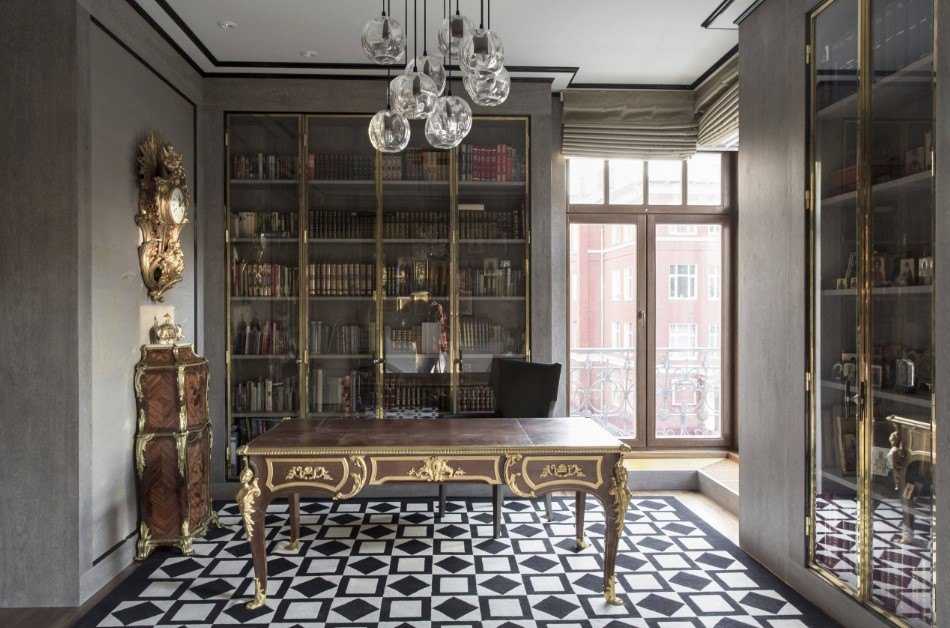 Это объясняется популярностью театральной эстетики со сложными декорациями, тяжелыми портьерами и блестящими деталями. Так что чем больше зеркал, блеска, фактурного текстиля, тем лучше. Главное – не переборщить, особенно при оформлении небольшой квартиры.