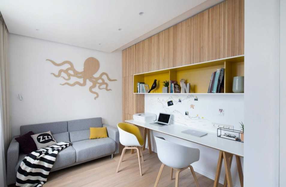 Еще одной горячей тенденцией дизайнерских решений на 2021 год, это добавление естественным образом к жилым помещениям рабочих мест. Таким достаточно сложным интерьером значительно расширяется возможная функциональность жилого пространства помещения и экономится реально полезный объем.