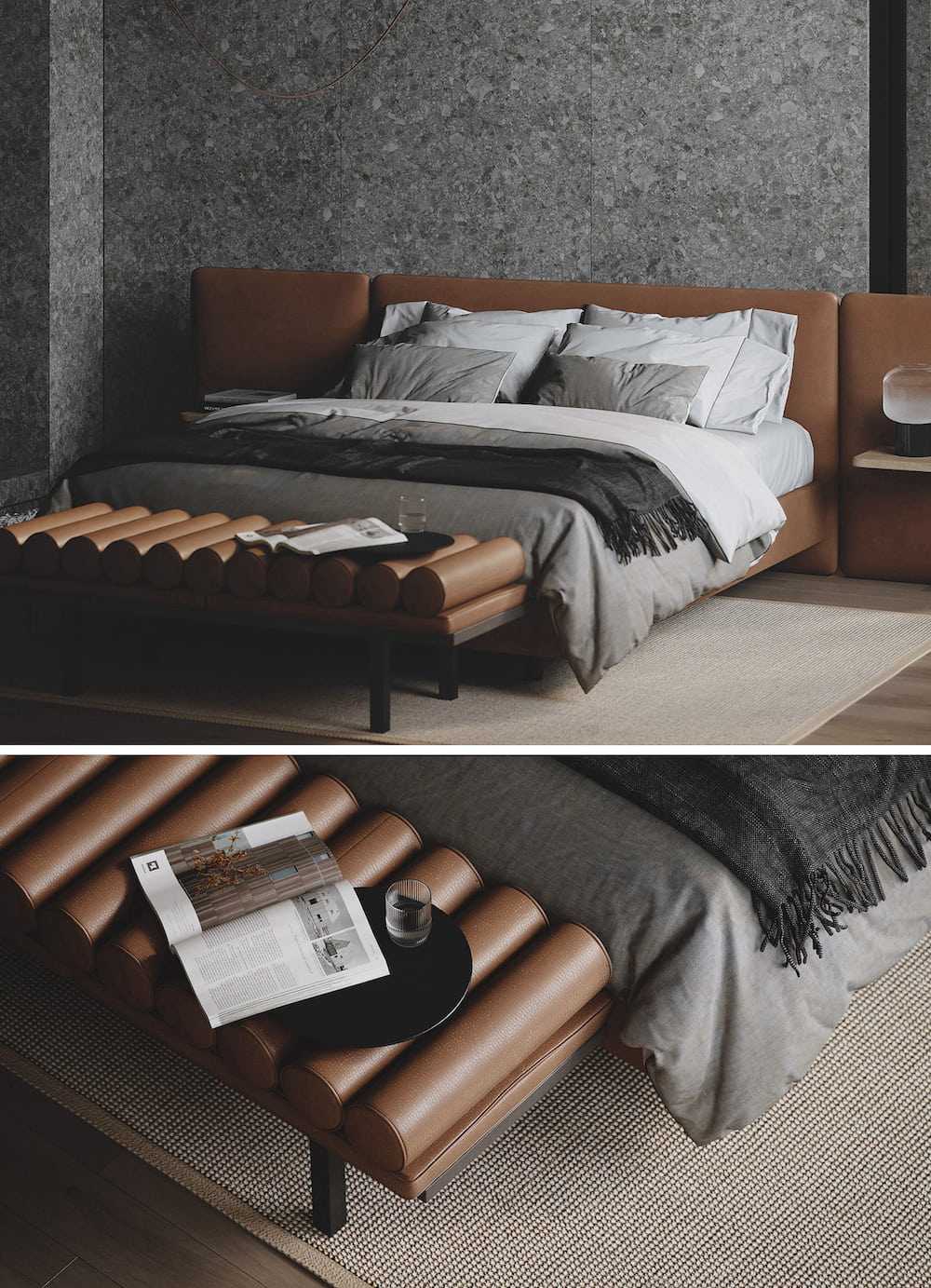 Кожа респектабельного каштанового или роскошного золотистого оттенка будет в следующем сезоне доминировать не только в роли отделки мебели. Все чаще дизайнеры применяют кожаные панели при оформлении стен и пола.