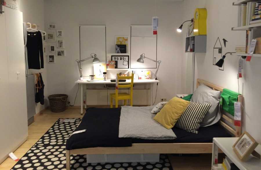 С учетом функционала помещения, следует особенно внимательно отнестись к его меблировке. Обязательными атрибутами данной спальни является кровать, рабочий стол с креслом или стулом и шкаф.