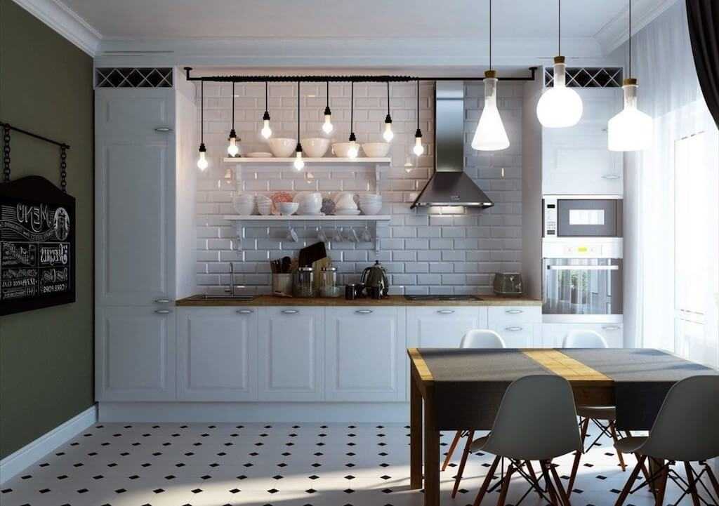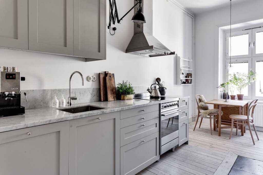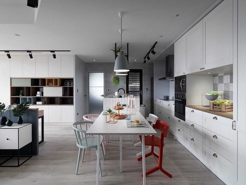 Белая кухня в скандинавском стиле — это классика. Главное — не зацикливаться на одном оттенке, а использовать полное многообразие тонов: