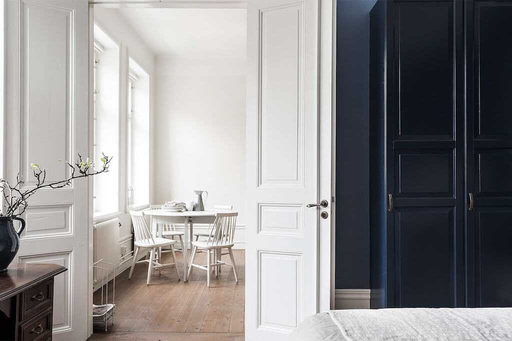Бесконечные озера и моря — еще одна неотъемлемая часть скандинавского ландшафта. Глубокие синие тона чаще всего выступают контрастным фоном для светлой мебели. Но на небольшой кухне он может играть и роль акцента в виде мебели, декора или даже посуды.