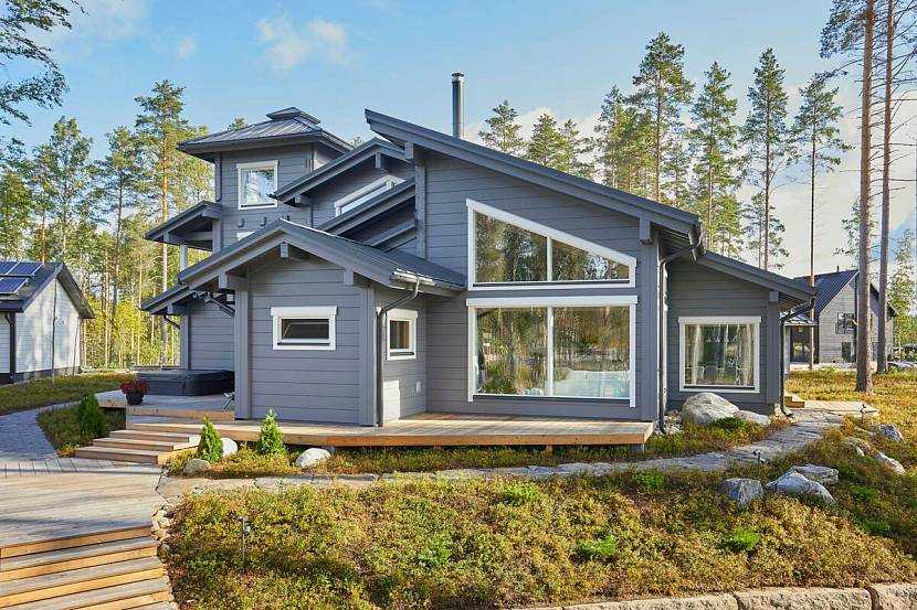 Дом в традиционном финском стиле имеет один жилой этаж и двускатную крышу. По запросам потребителя дизайнеры и архитекторы проектируют дополнительный второй этаж, террасу, баню или сауну.