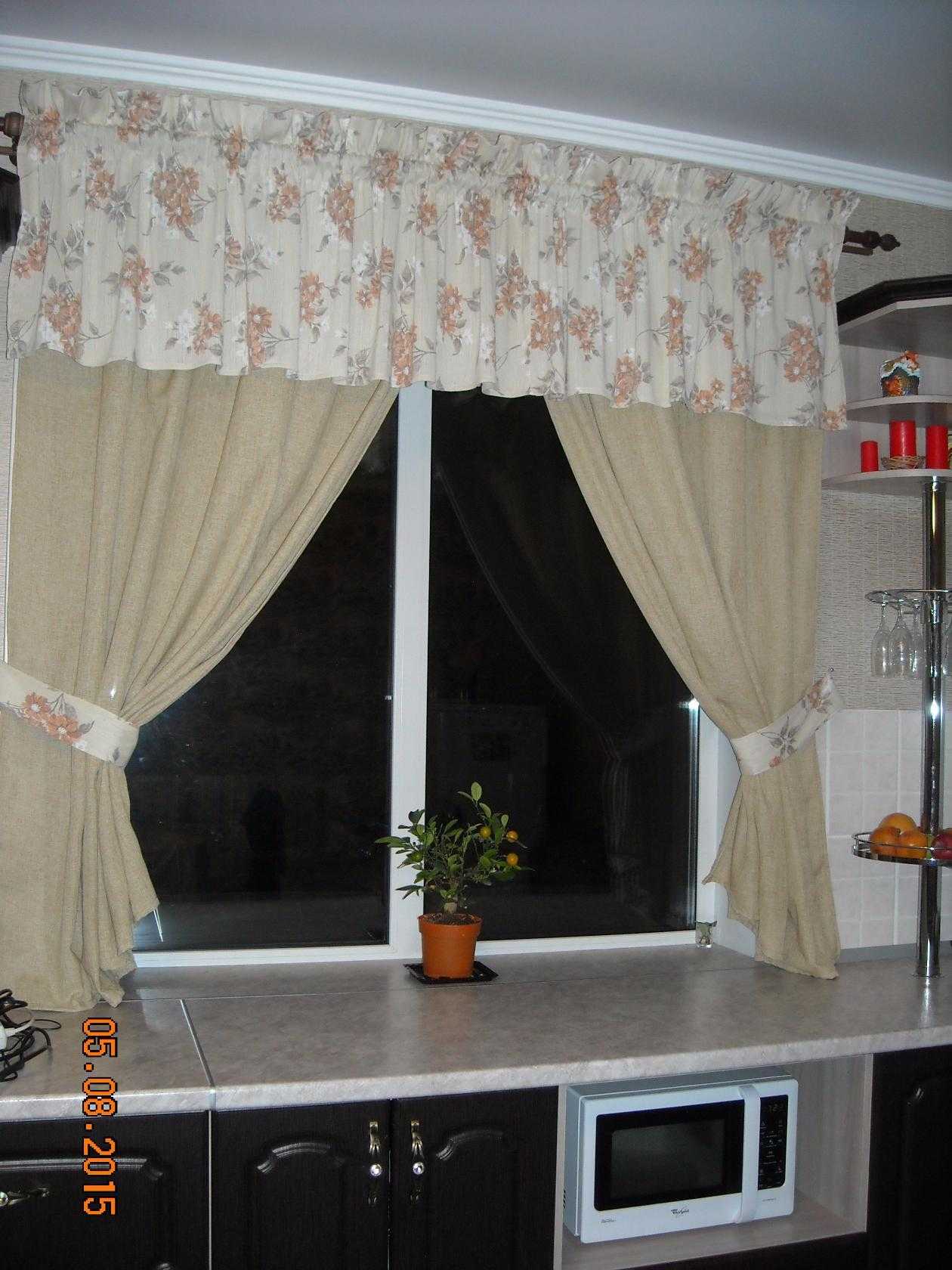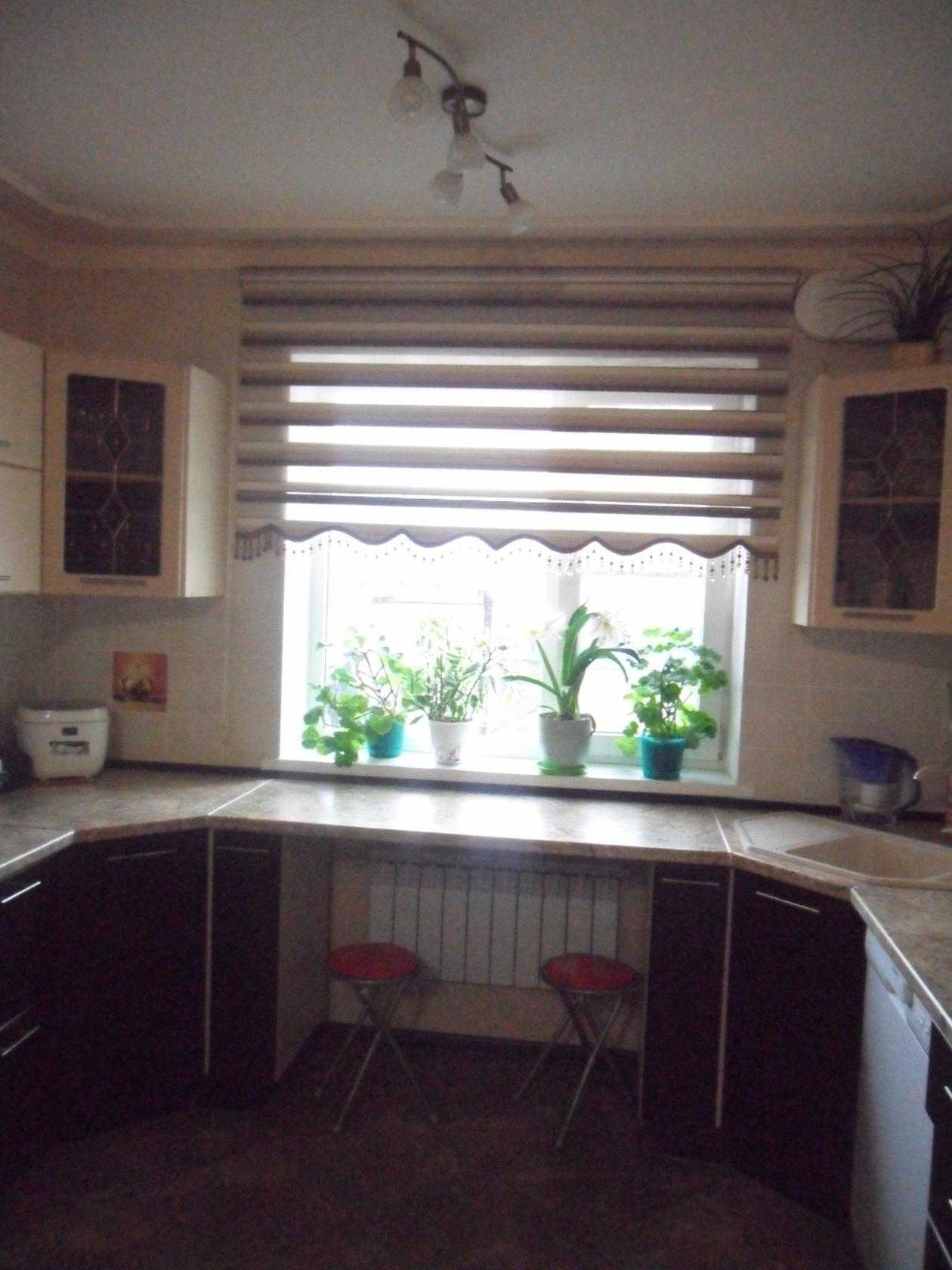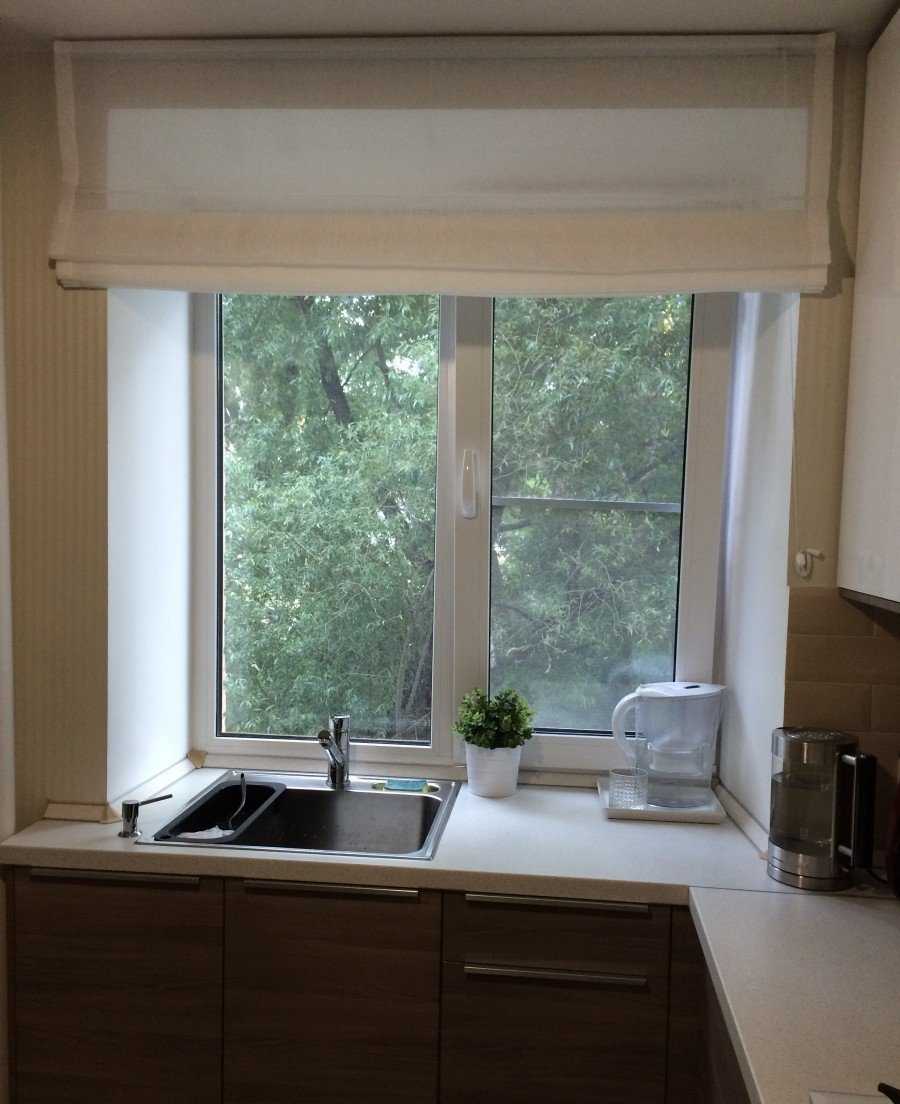 Занавески на окна с мойкой удобнее повесить те, что имеют механизм подъёма, т.е. римские или рулонные шторы либо жалюзи. Так вы сможете удобно закрывать и открывать обзор.