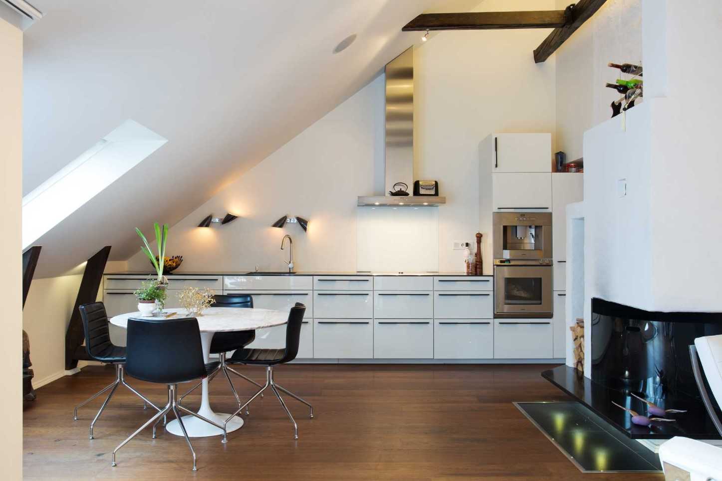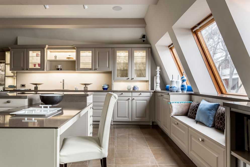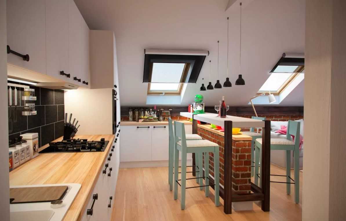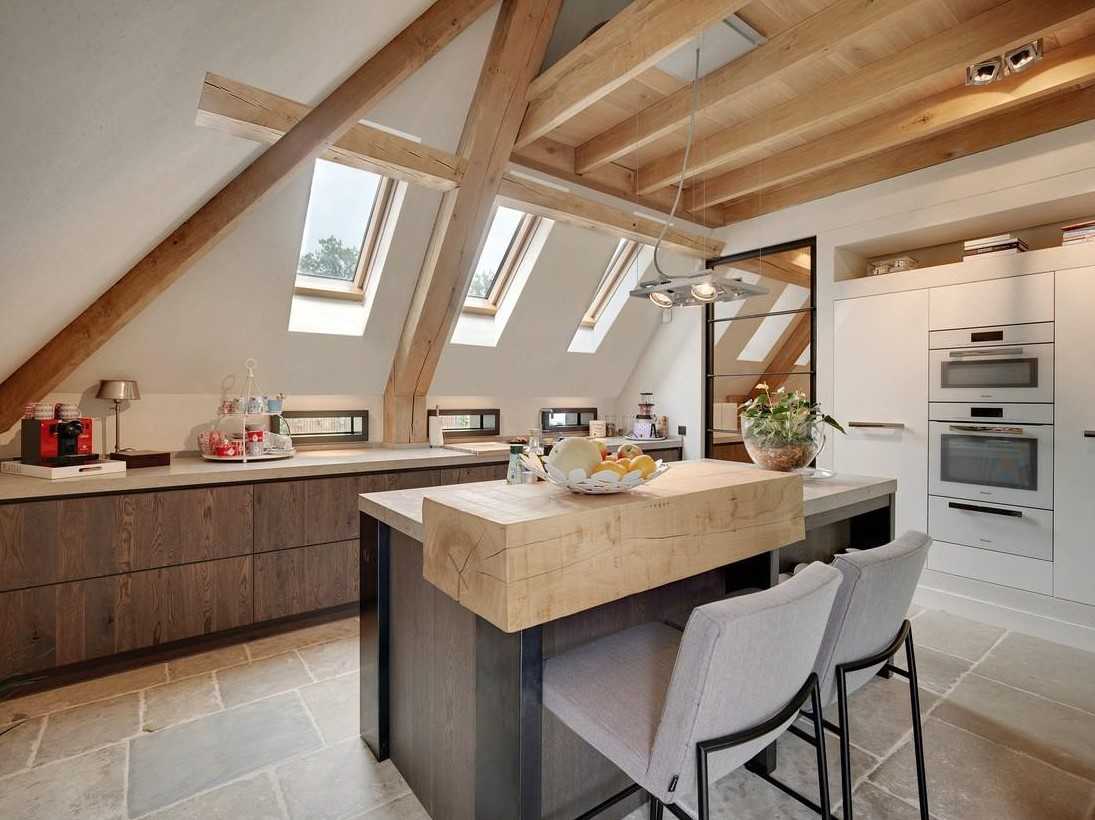 Особое внимание уделите кровле: она не должна протекать, надежно защищая помещение ниже от влаги. Особо приветствуется окно в крыше — это всегда эффектный дизайнерский ход, который не только украсит вашу кухню прекрасным видом голубого неба днем и звездного неба, но и станет еще одним источником света