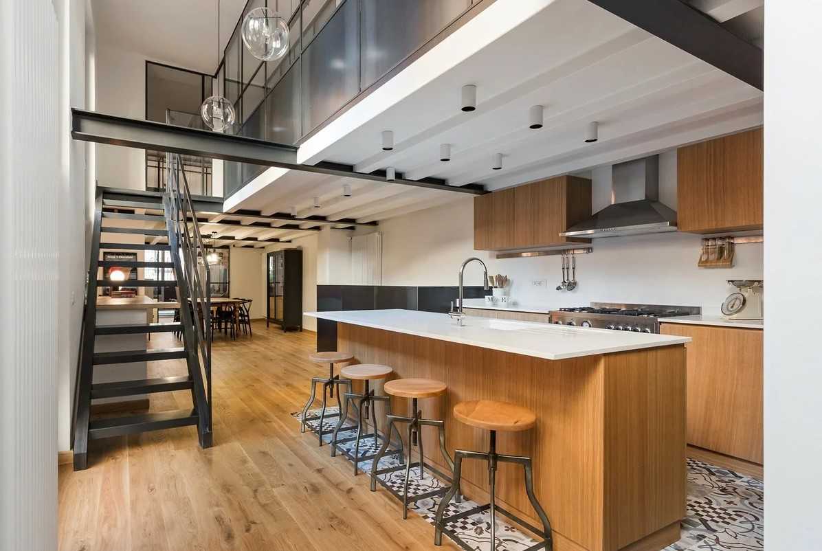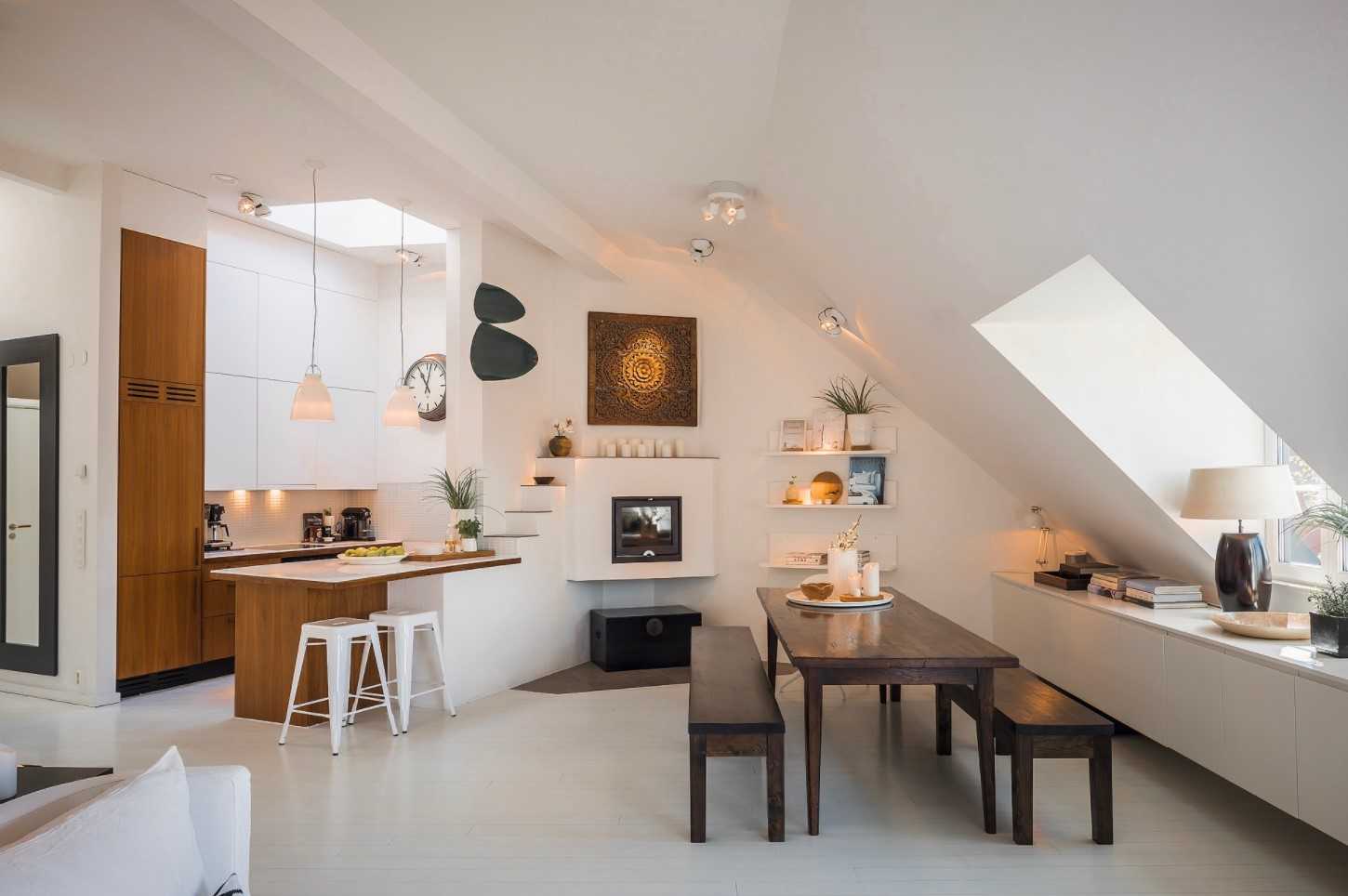 Одностенная кухонная планировка обычно находится в студийных или мансардных помещениях.