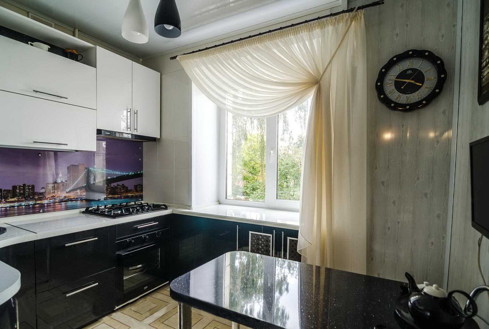 Еще один недостаток – больше затрат на уборку от летящих брызг воды и жира на стекло, шторы. В этом случае больше подойдут жалюзи, рулонные модели.