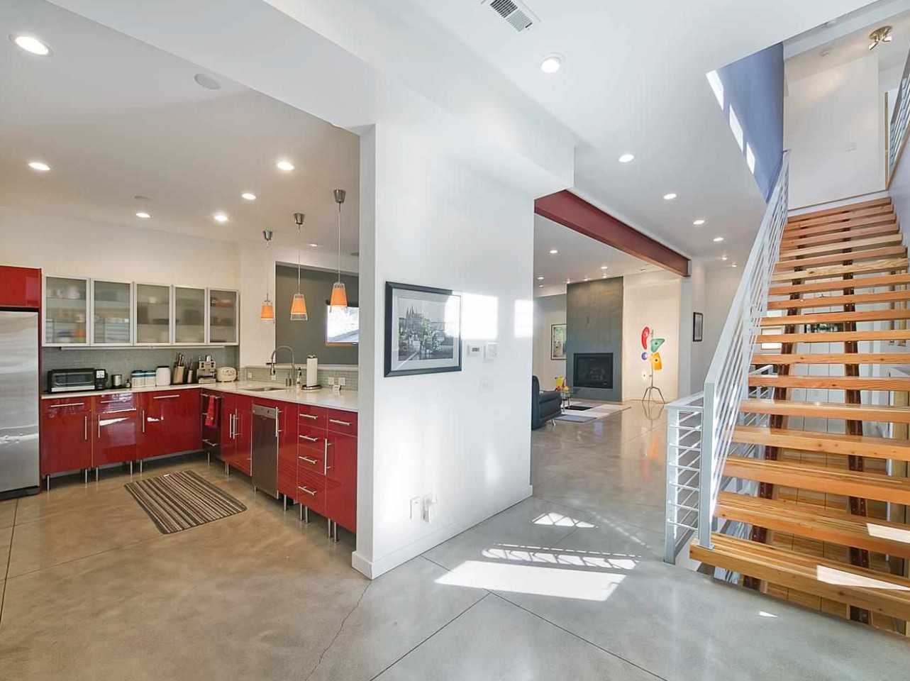 Такой шаг оправдан, если в вашем доме предусмотрен скрытый гараж. Экономия полезной площади налицо! Вот только коммуникации нужно будет перенести этажом выше.