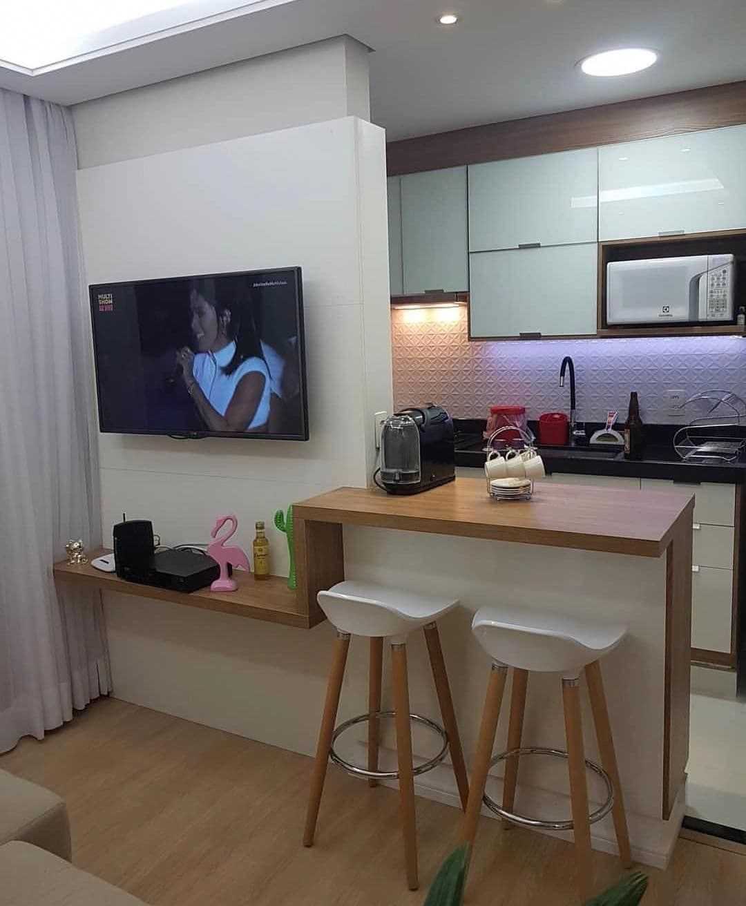 Барная стойка может заменить обеденный стол в малогабаритной квартире;