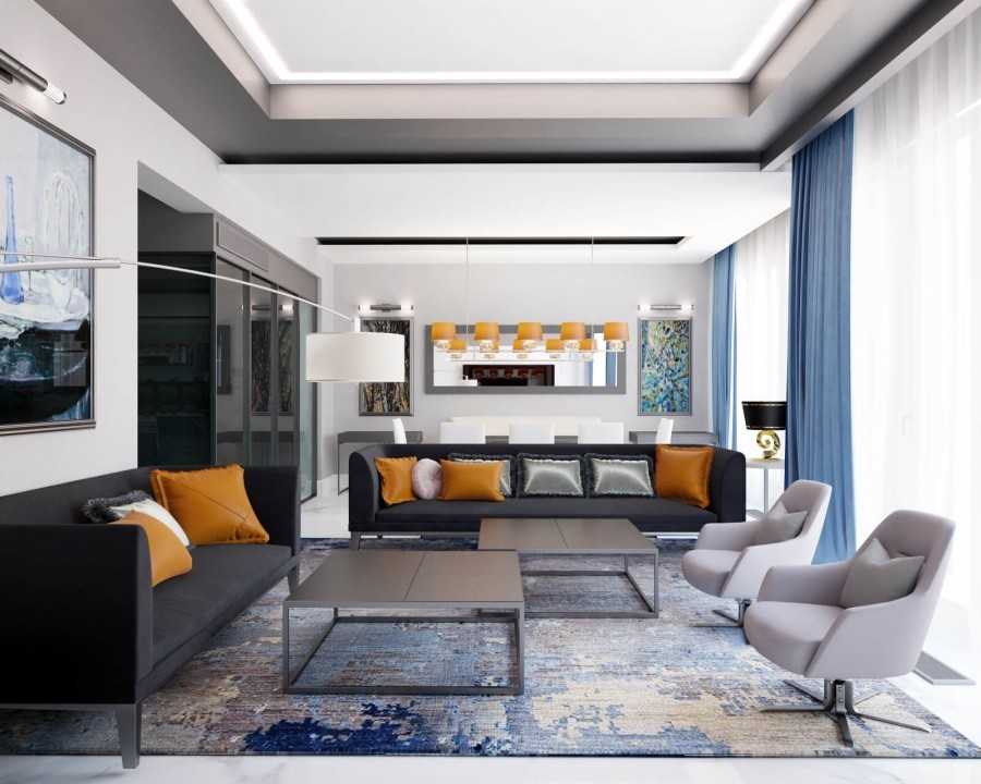 Дизайн гостиной выполнен в современном стиле