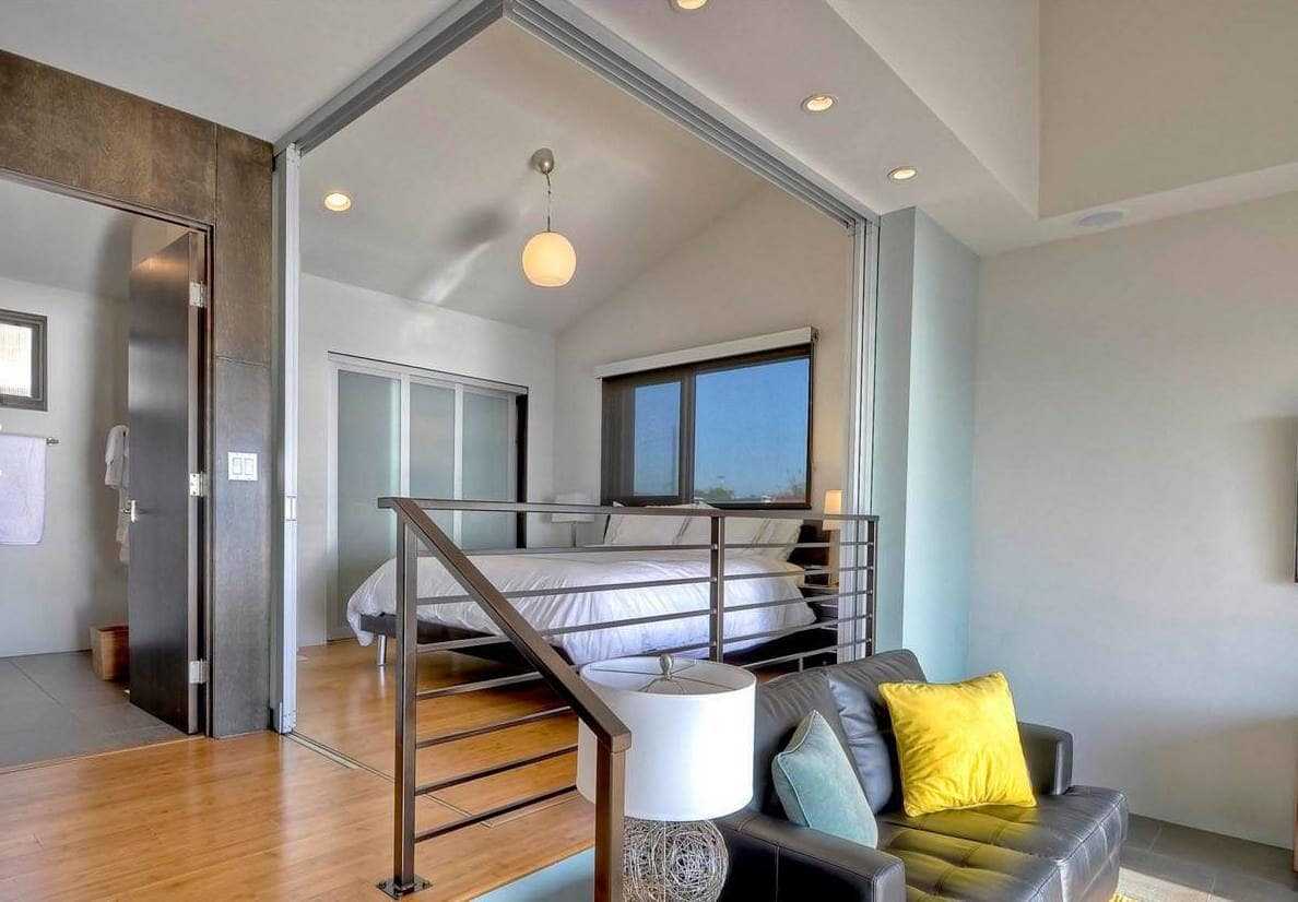 - Ограничение спального места. Не нужно оставлять очень много пространства за кроватью. Ее лучше сделать ограниченной одной кроватью или вообще сделать ее трансформерной. Второй вариант позволит оставить все помещение для отдыха и развлечений. Особенно это полезно в том случае, если в квартире живут дети.