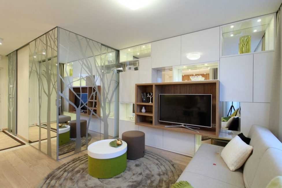 зеркальная стена – увеличивает объемы помещения;