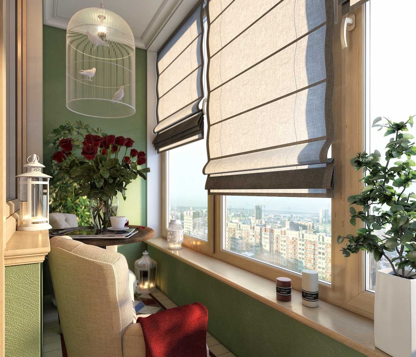 Большего простора для воплощения дизайнерских задумок дают маленькие балконы с панорамными окнами. Свет, красивый вид на городские или природные пейзажи – можно наслаждаться жизнью в пределах небольшого домашнего пространства.