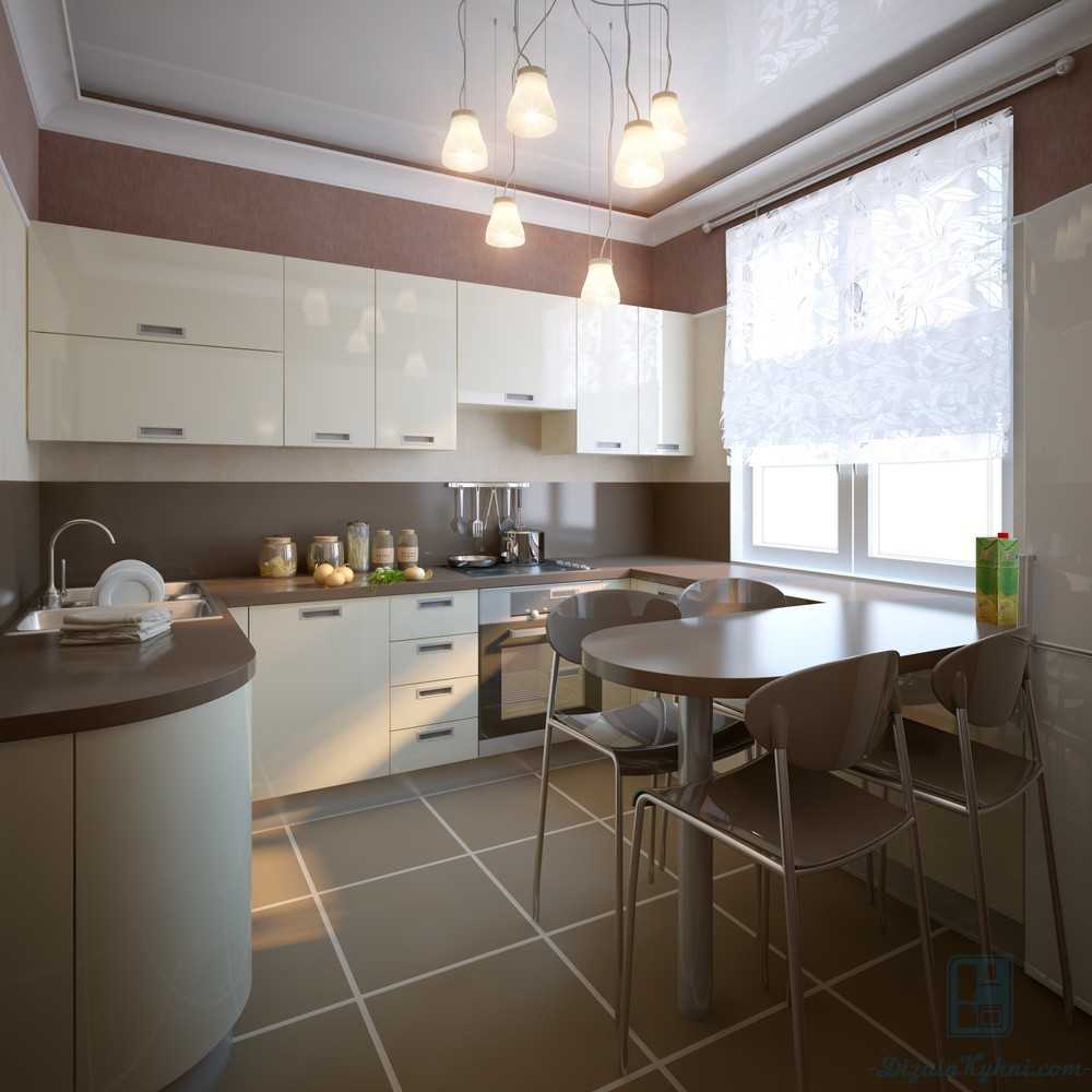 Бежевая кухня – это наиболее практичный вариант, к тому же она имеет тёплый тон, на котором не так заметны загрязнения. Коричневый и белый цвет будут удачно гармонировать в таком оформлении.