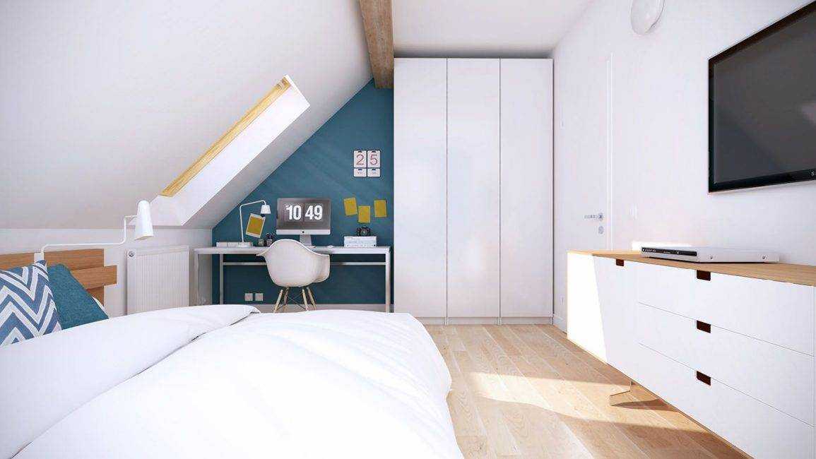 Спальня, детская, гостевая или кабинет получатся более эстетичными, если стены и потолок отделывать одним видом материала (обоями, вагонкой, штукатуркой и т. д.). Такой приём поможет зрительно расширить и «упорядочить» пространство помещения с ломаной неровной крышей.