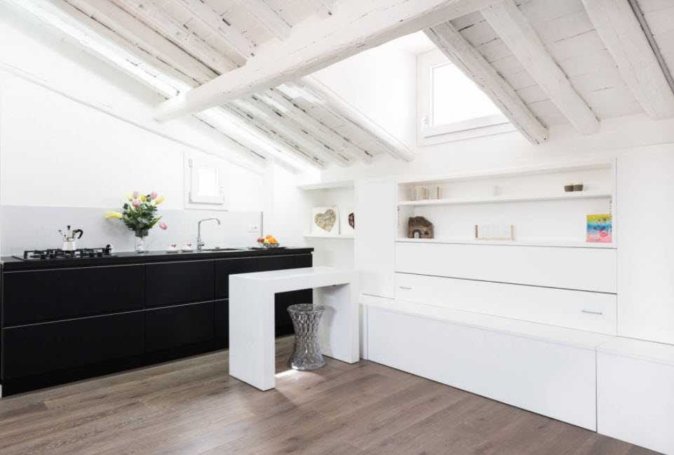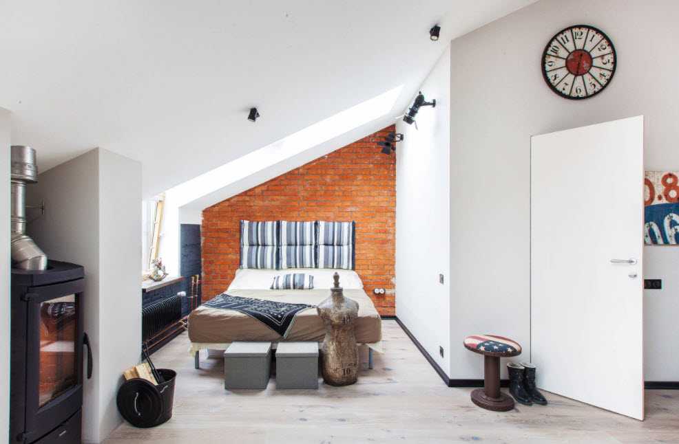 продуманное задействование в интерьере необычных конструкций (балок, скошенных потолков и т.д.);