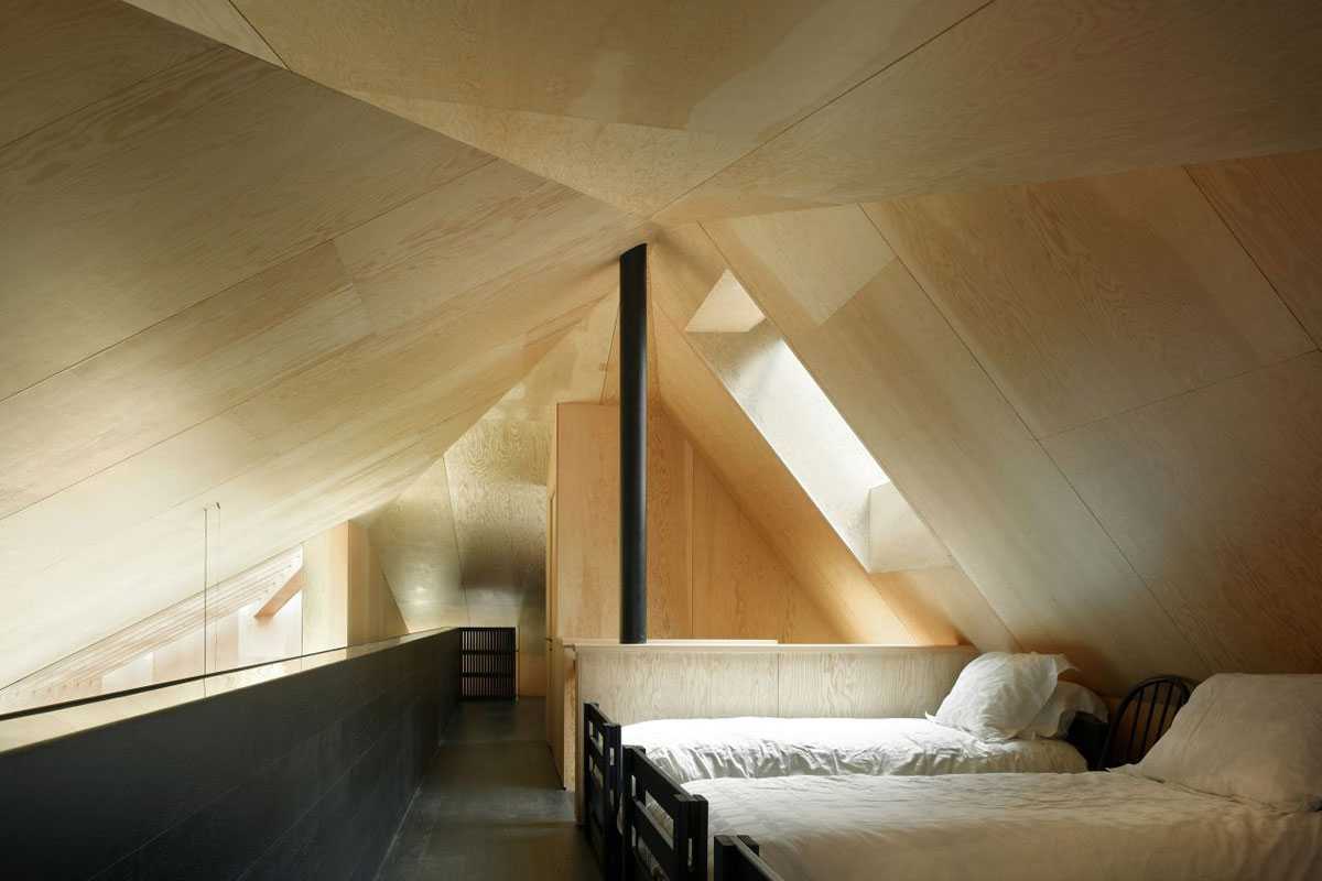 - удачно обыграть наклонные стены, системы балок, стропил;