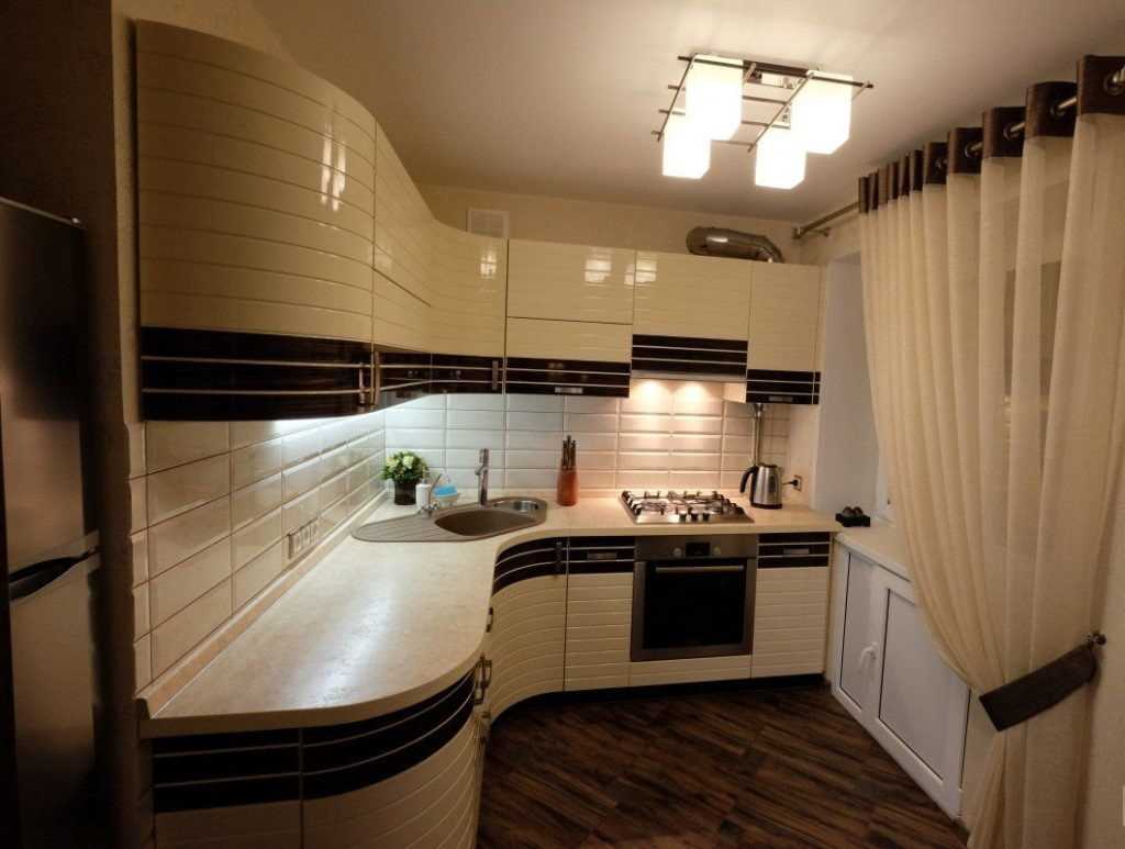 Для общего освещения кухни используют потолочную люстру, для подсветка фартука – накладные или встроенные светильники