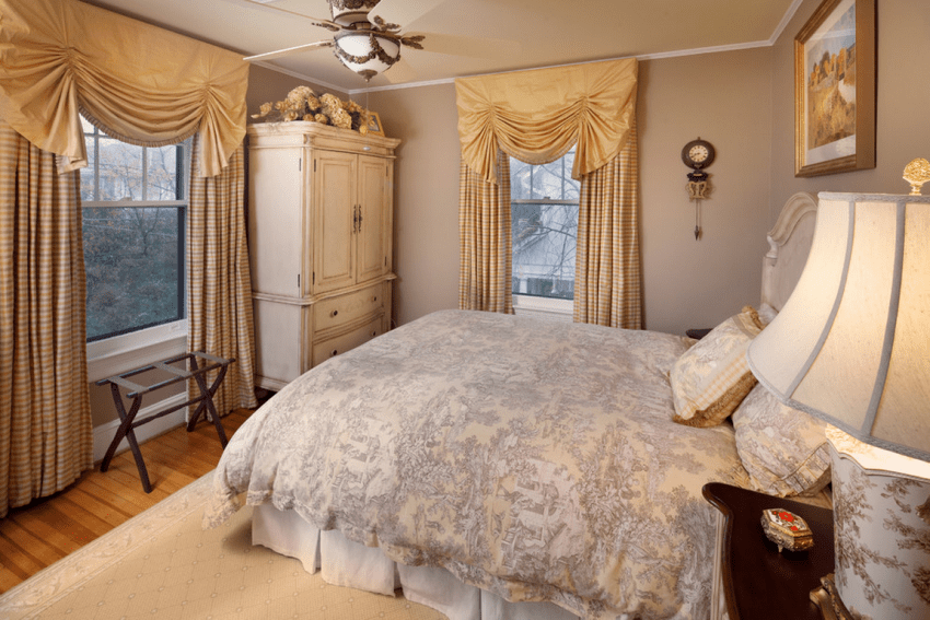 Их пышные и объемные складки – хорошее решение для спален среднего размера и интерьера, оформленного в классическом стиле.