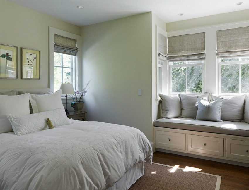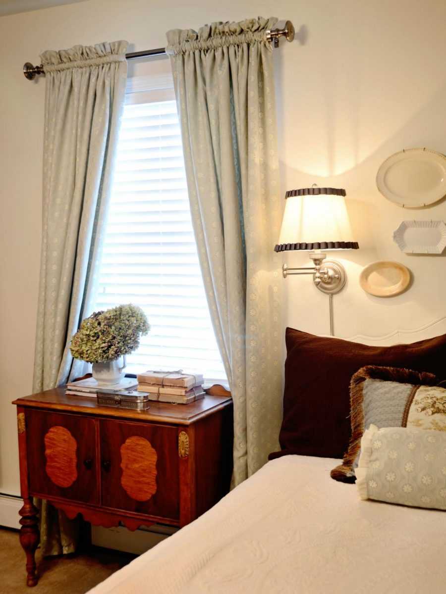 Выбирая шторы для спальной комнаты площадью менее пятнадцати квадратных метров, следует использовать светлые тона тканей. Это позволит визуально расширить пространство, создать атмосферу комфорта и уюта.
