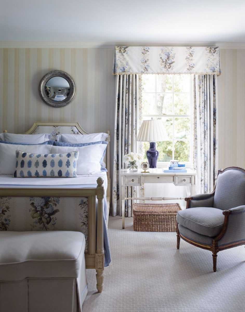 Ориентируйся на нежную и светлую пастельную гамму и натуральные ткани. В интерьер впишется горох и клетка, растительные узоры и мелкий витиеватый орнамент. Мотивы на шторах могут перекликаться с обоями, покрывалом, декоративными подушками и другим текстилем.