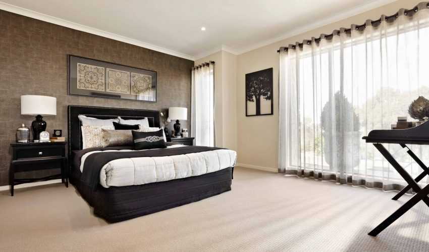 Кроме этого, спальни с коричневыми шторами выглядят благородно и дорого.