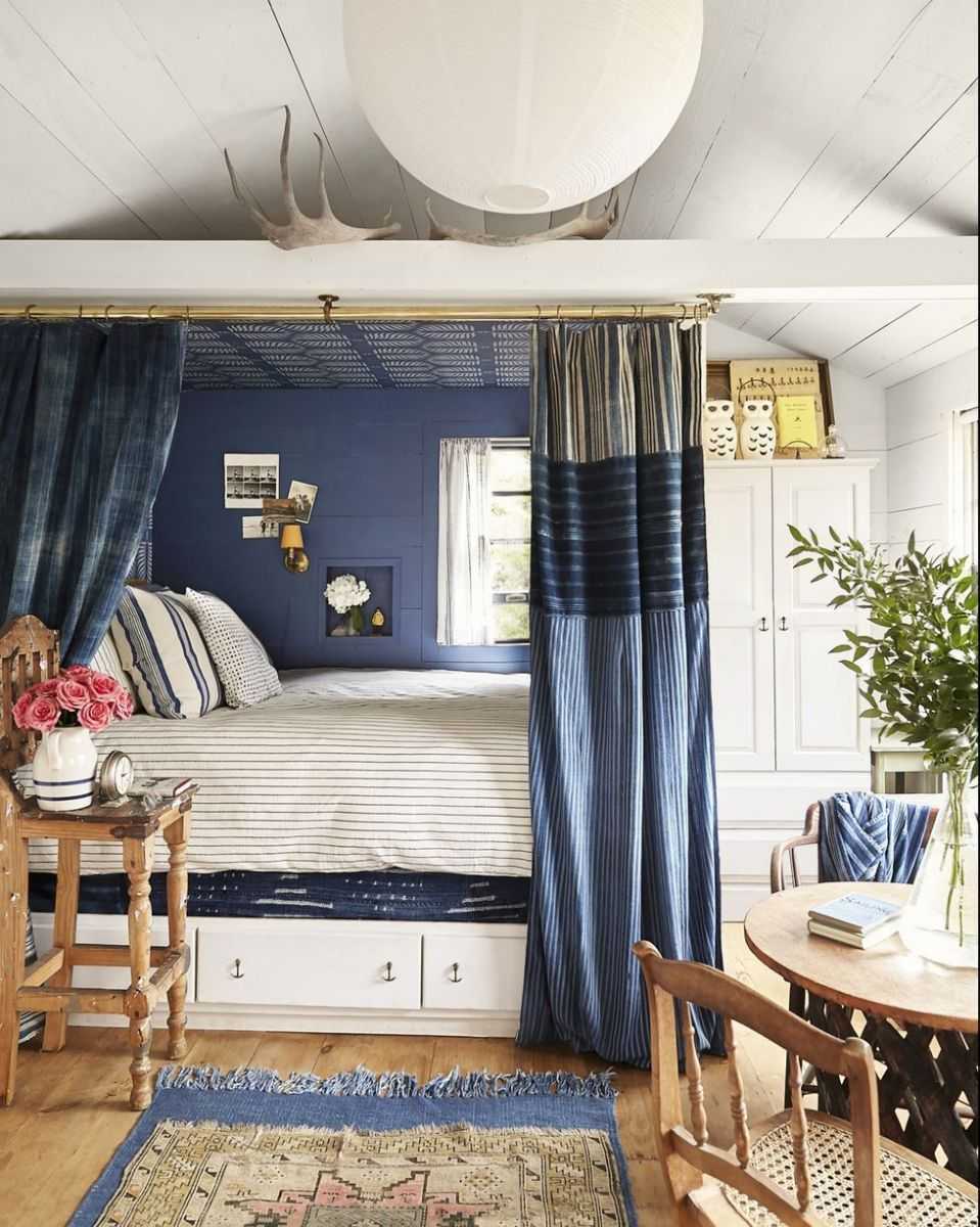 Используйте для спальни занавески, которые не только преобразят комнату, но и смогут защитить от солнечных лучей, а также немного снизят уличный шум. В этом вам помогут занавески из плотной ткани, а именно: парчи, бархата или вельвета