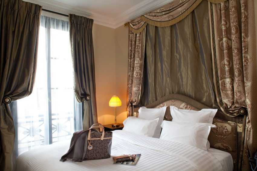 Вместо тюля обрати внимание на шелк или органзу, а поверх – бархат, велюр, объемные гобеленовые ткани. Но учти, что это уместно только в большой и просторной спальне