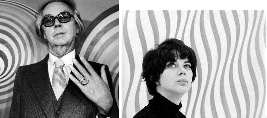 Бриджит Райли и Виктор Вазарели на фоне своих произведений