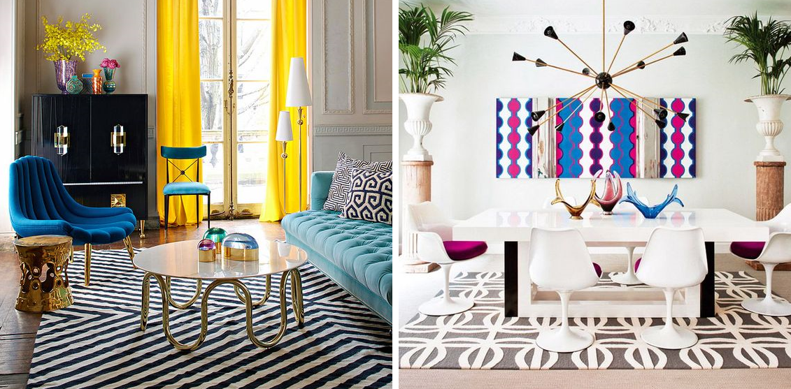 Более узнаваемого эффекта можно добиться с помощью насыщенных красок и строгих черно-белых контрастов. Сам рисунок может быть намного проще полотен абстракционистов, но он должен передавать ощущения ритма, динамики. Не бойтесь сочетания геометрических принтов и экспериментов с мебелью — иллюзионистские формы поп-арта могут интересно смотреться в качестве элементов мебельной конструкции. Такие объекты часто носят чуть ироничную, шутливую форму.