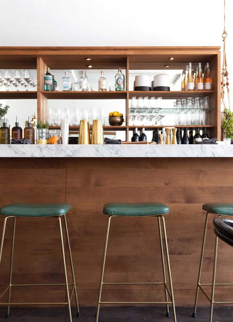 Еще одним арт-объектом мид-сенчури стал открытый бар – оригинальные инсталляции из бутылок привлекали внимание и служили не только местом хранения напитков, но и предметом декора интерьера