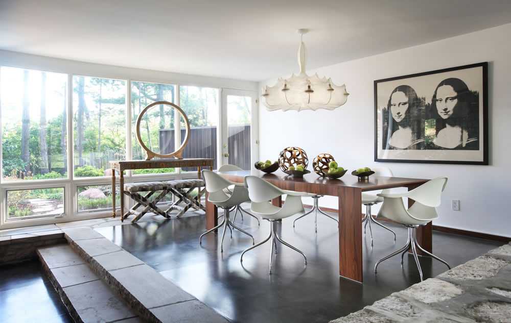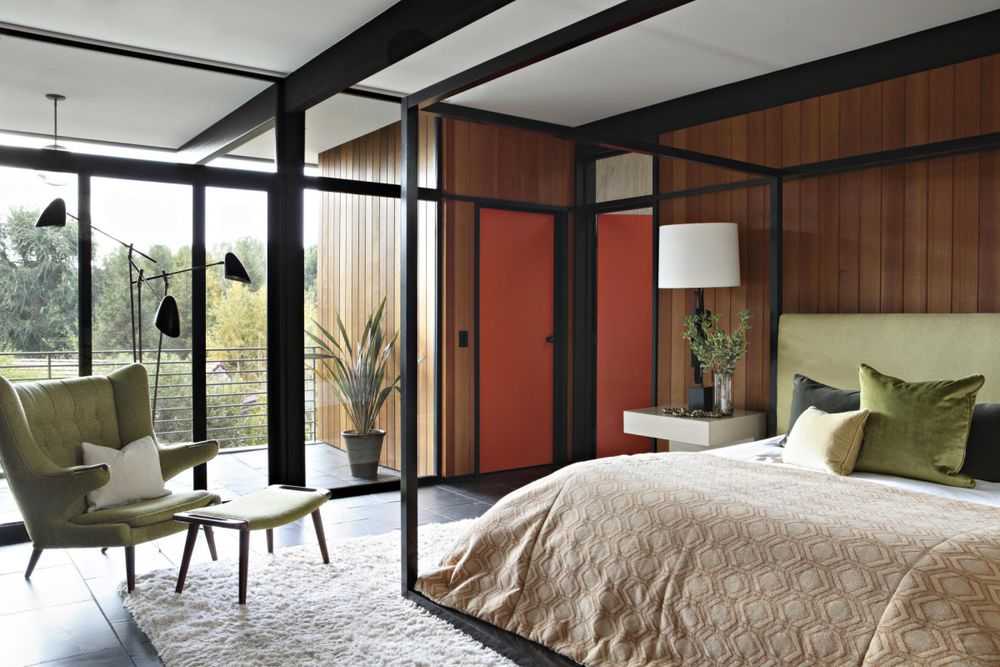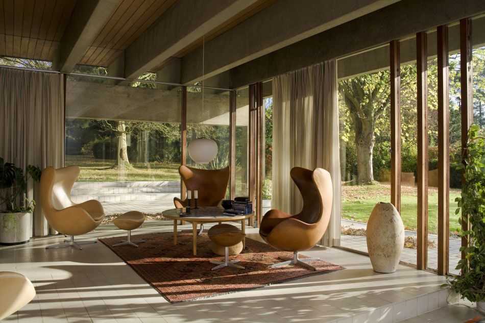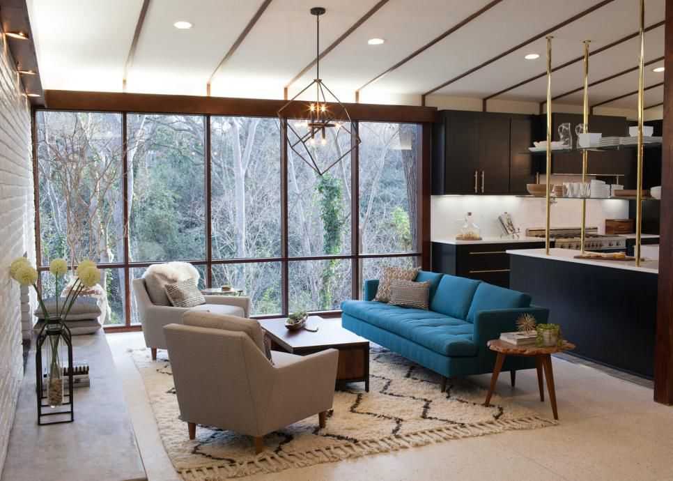 - Максимум света и пространства – для мид-сенчури характерно панорамное остекление и открытость интерьеров, использование минимума деталей декора;