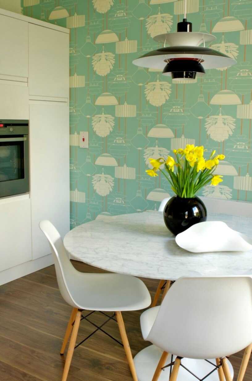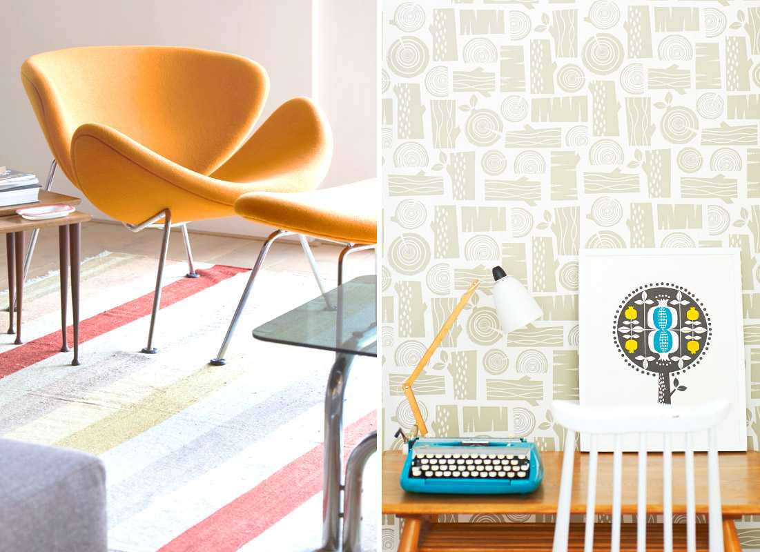 Покрытие стен обоями не составляло труда, а вот возможностей цветового комбинирования рисунков представлялось много, поэтому обои стали одним из основных материалов в создании мид-сенчури интерьеров.