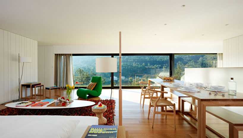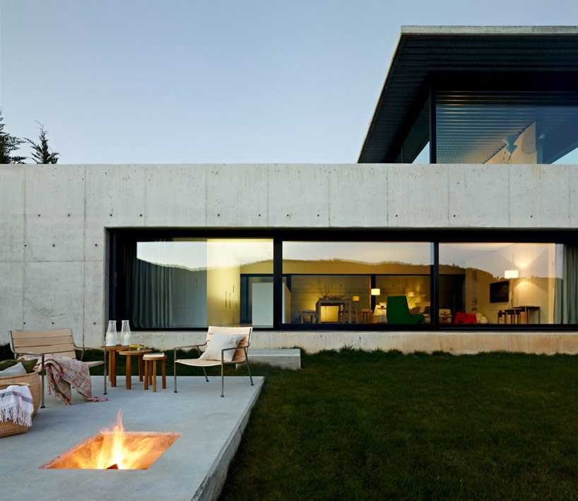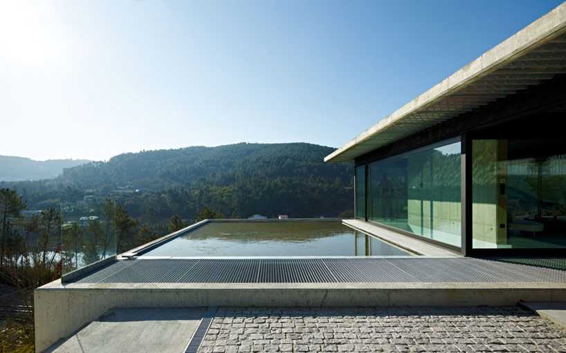 Другим проектом дома у озера, который производит феноменальную работу по смешиванию с окружающей средой, является Miño River House в Галисии, Испания. Изобретательный дизайн как бы прячет гостиную, столовую и кухню в той стороне холма.