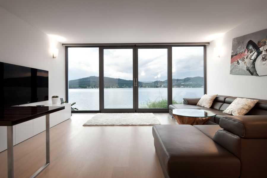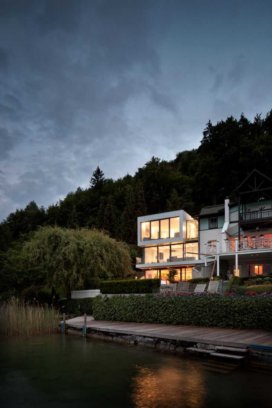 Однако этот завораживающий дом в Каринтии, Австрия, от Spado Architects разрушает этот миф полностью! Дом использует прозрачные белые стеклянные панели и бетон для слияния частной жизни с поразительным видом на озеро.