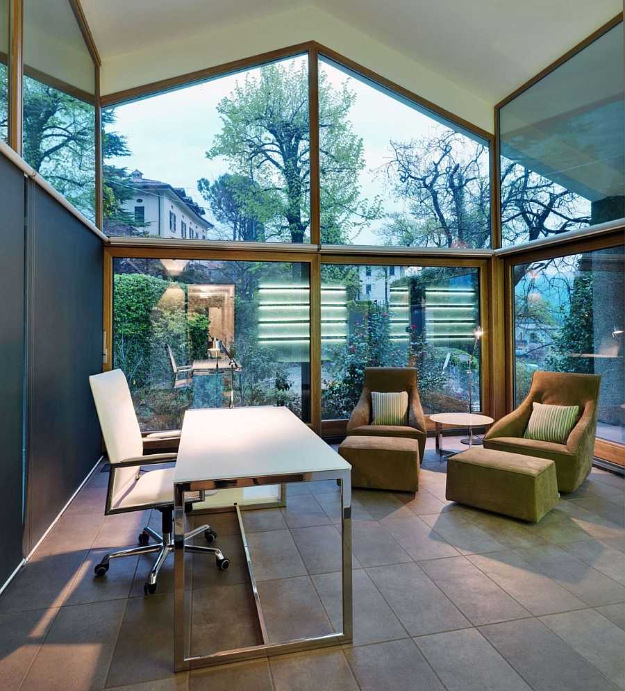 Простая, но всё же классическая форма дома, скатная крыша, вневременной силуэт структуры играют большую роль в создании мечтательной привлекательности! Широко используя стёкла и изысканные интерьеры, итальянский дизайнер Marco Pava спешит омолодить и освежить обстановку!