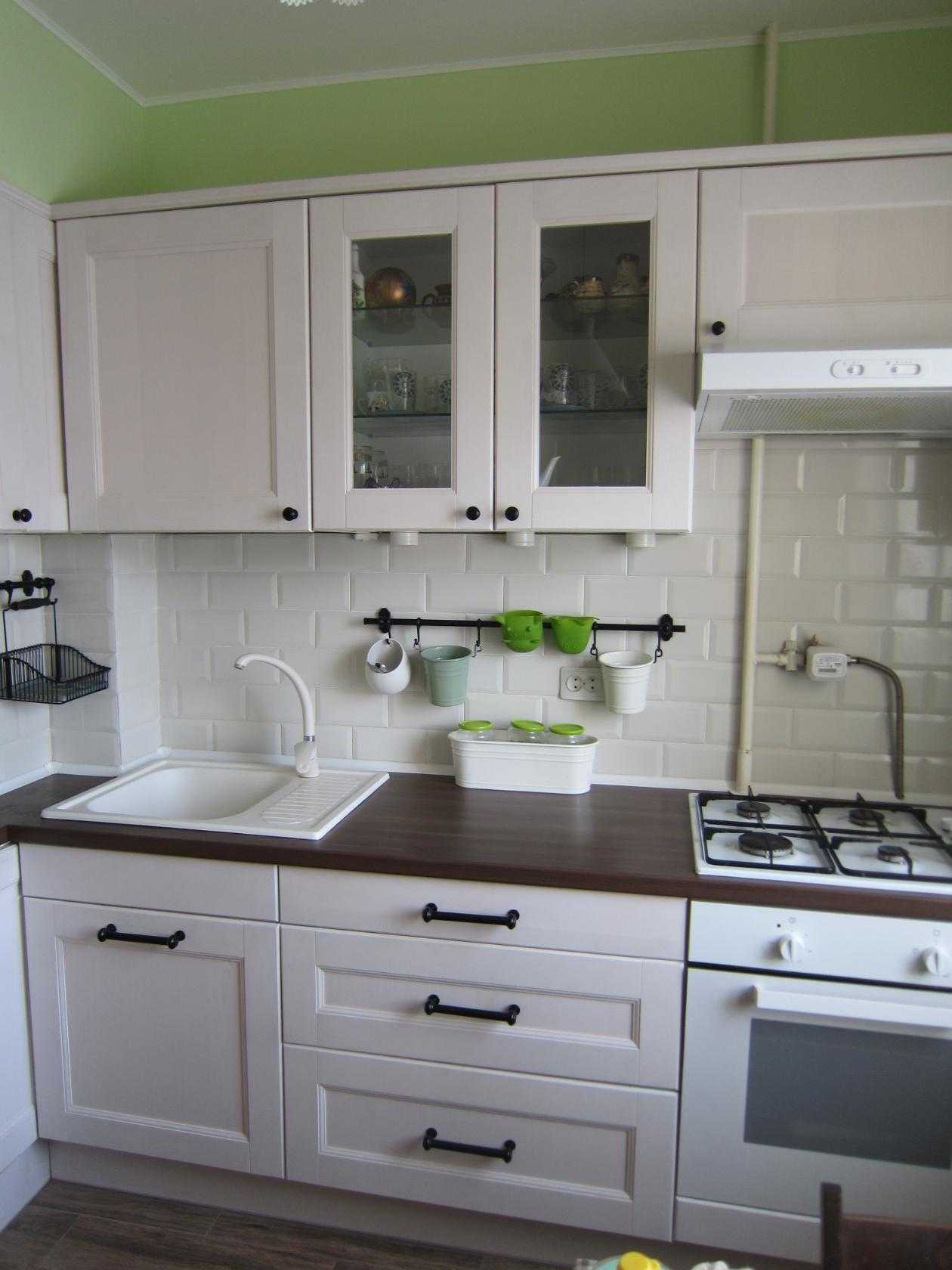 К универсальным решениям также относится бело-фисташковая кухня. Белый можно использовать любого подтона, однако старайтесь избегать слишком холодных оттенков: они визуально будут контрастировать с теплотой зеленоватого орехового цвета. В этом случае постарайтесь добавить в интерьер еще один цвет — это может фуксия, бордо, сапфировый синий, насыщенный шоколадный. Поэкспериментируйте с естественными, природными тонам — они впишутся в композицию как нельзя лучше и заметно оживят ее.